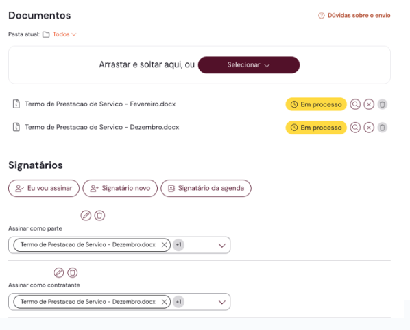 O envio flexível permite personalizar qual(s) signatário(s) devem assinar cada documento, dando mais liberdade e praticidade para o envio dos seus documentos.