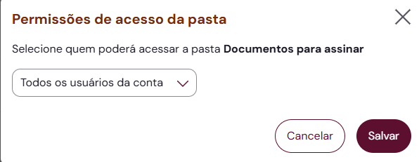 É possível configurar quais usuários da conta poderão ter acesso em pastas específicas.