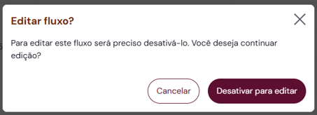 Passo 1: Caso o fluxo que deseja incluir uma etapa de aprovação esteja ativado, será necessário desativá-lo.