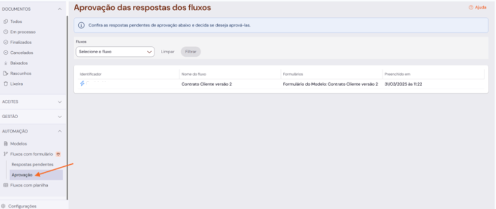 1. Clique em "Aprovação", na aba "Automação" no menu lateral