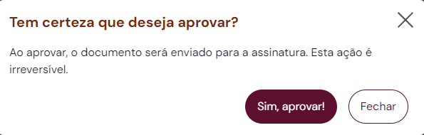 Mudanças no modelo ou formulário invalidam o documento. Opte por aprovar ou recusar os fluxos pendentes antes de realizar as alterações.
