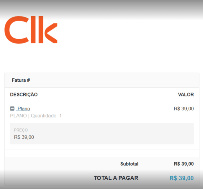 A fatura será emitida de acordo com o método de pagamento cadastrado em sua conta.