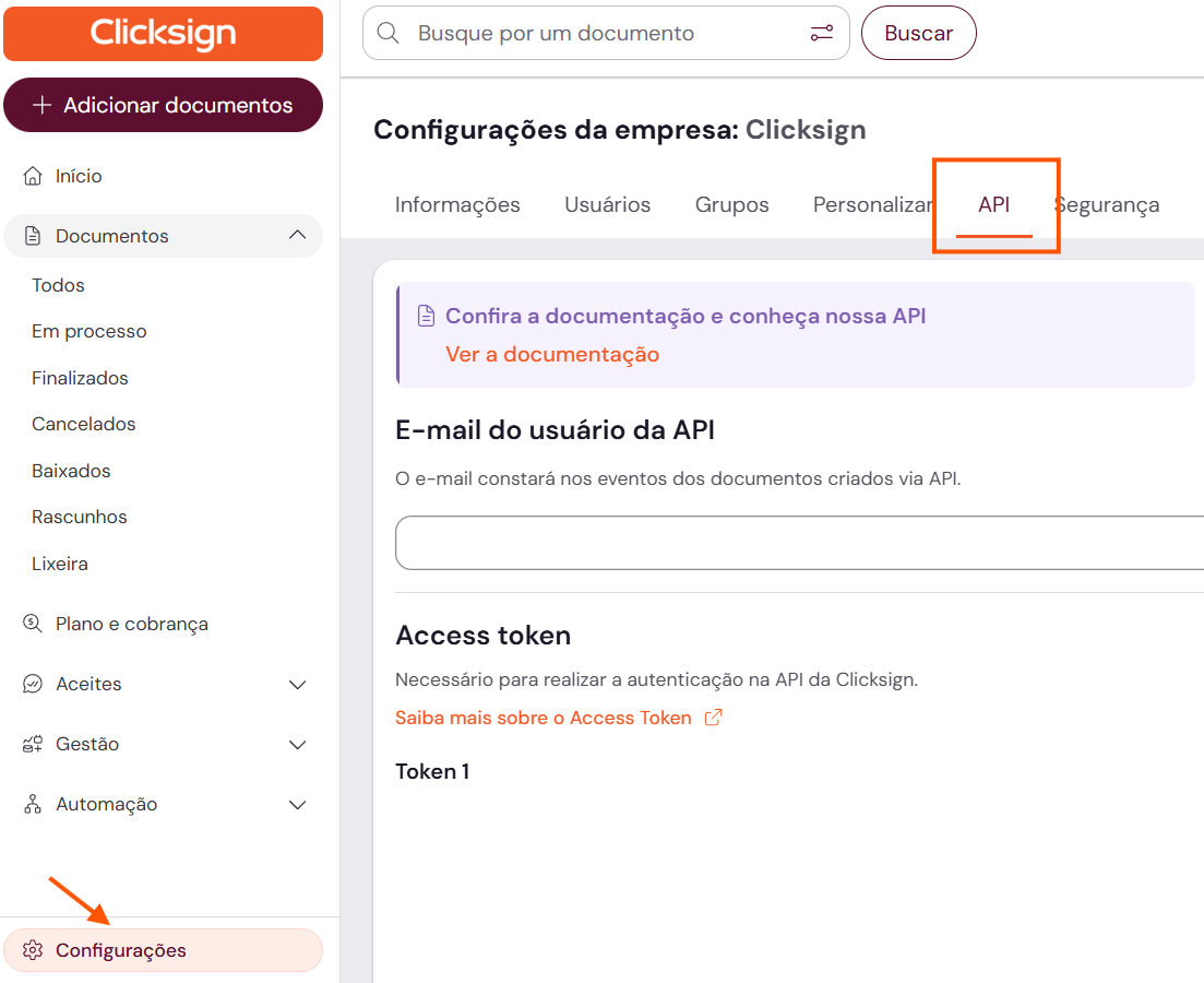 - Acesse o Sandbox: Entre em https://sandbox.clicksign.com/