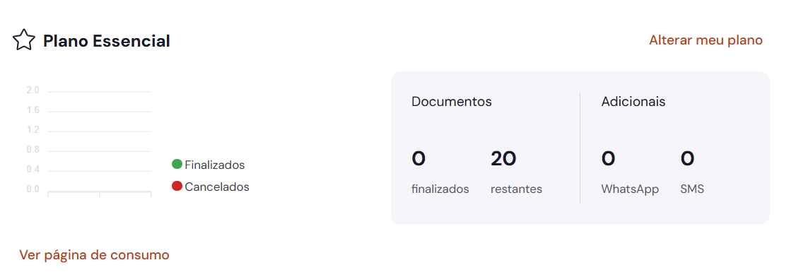 O bloco Consumo do plano, localizado no Início, possibilita acompanhar o número de documentos no período vigentes.