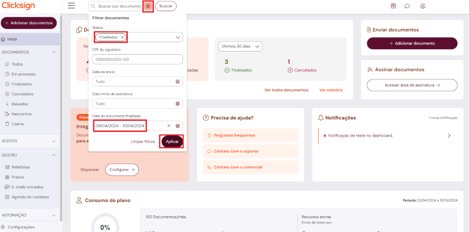 Se necessário, é possível filtrar os documentos da plataforma, funcionando como uma busca avançada.