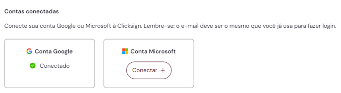 Vincule contas Google ou Microsoft com sua conta Clicksign utilizando o mesmo endereço de e-mail.