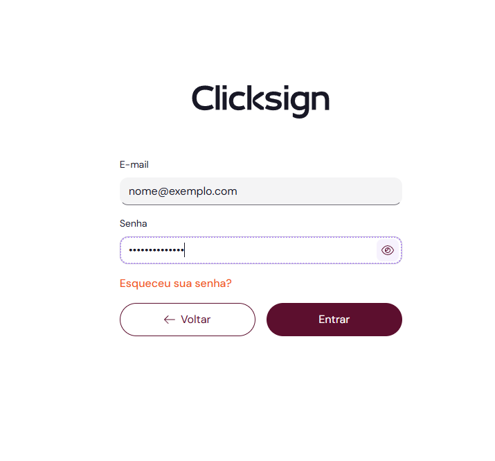5. Agora é só acessar sua conta Clicksign pelo e-mail e utilizar a senha recém criada.
