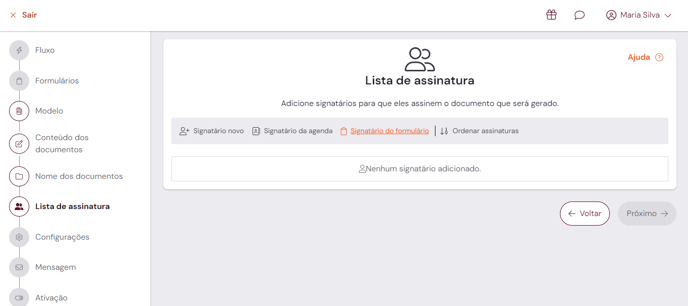 Em um Fluxo com formulário é possível, além de inserir signatários novos ou da agenda, adicionar signatários advindos do formulário. Dessa forma o signatário receberá automaticamente o documento para ser assinado após inserir seus dados no formulário.