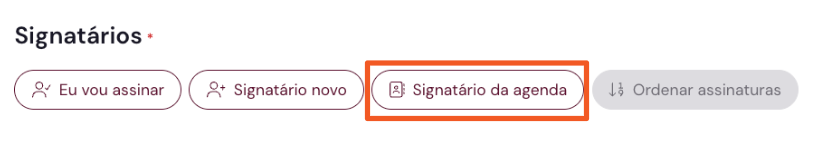 Para adicionar um signatário já existente e que foi salvo anteriormente na agenda, basta clicar em "Signatário da agenda" e selecionar o contato desejado.