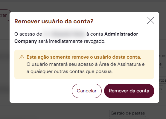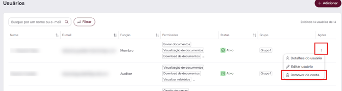 3. Clique em Ações (...) e, em seguida, na opção “Remover da Conta”.