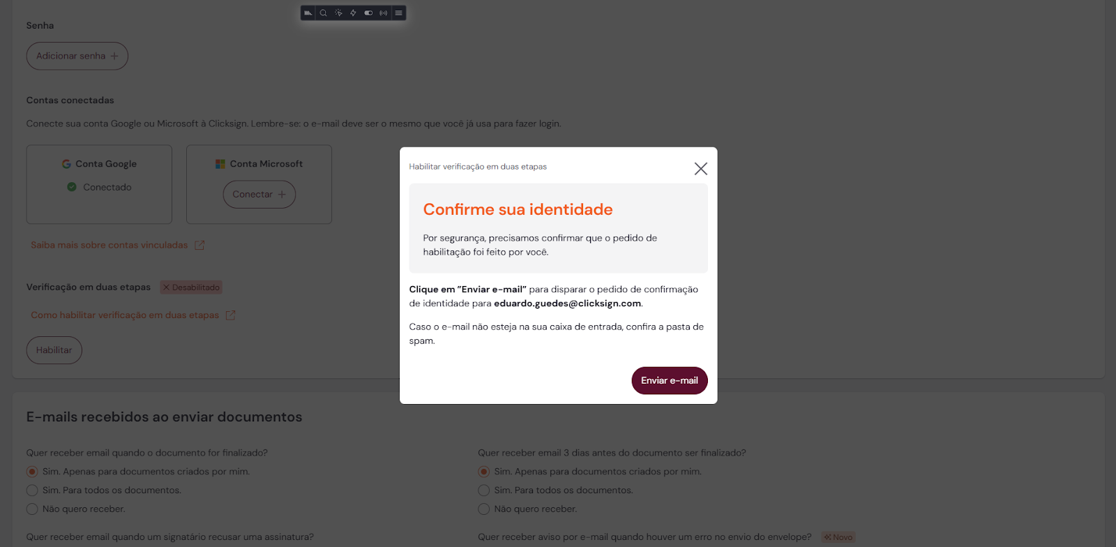 Como habilitar a Verificação em duas etapas?