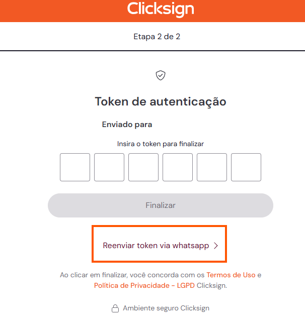 O token será enviado automaticamente via e-mail, SMS ou WhatsApp (conforme definido pelo remetente - quem solicitou a assinatura).
