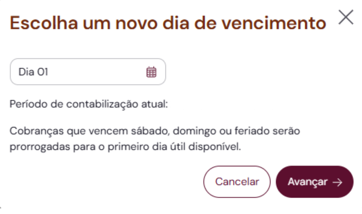 Depois, selecione uma nova data para o vencimento da sua fatura.