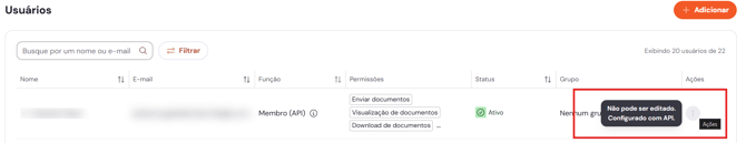 *Atenção: para remover um usuário que está vinculado a chave de API utilizada na integração, além de remover você precisa refletir na sua integração.