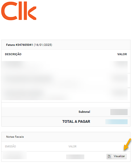 Por fim, você será direcionado para a página da fatura e poderá fazer o download da Nota Fiscal desejada clicando em “visualizar”.