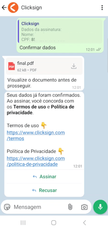 Assinando o documento via WhatsApp