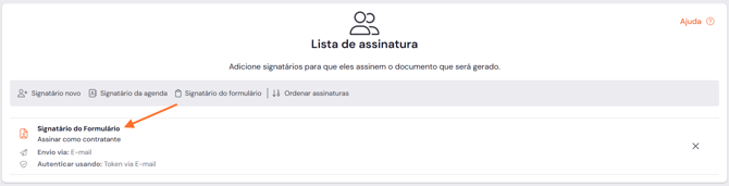 Se o e-mail do signatário já estiver configurado na etapa de assinatura, ele será incluído automaticamente na lista de campos do formulário.
