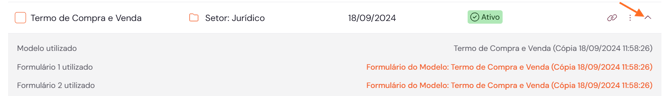 Também é possível visualizar o modelo de documento vinculado ao fluxo, assim como seus formulários associados. Caso o fluxo tenha dois formulários, ambos poderão ser pré-visualizados antes do envio para assinatura dos signatários.