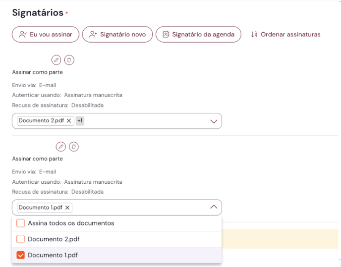 - Possibilidade de personalizar quais documentos cada signatário deverá assinar.