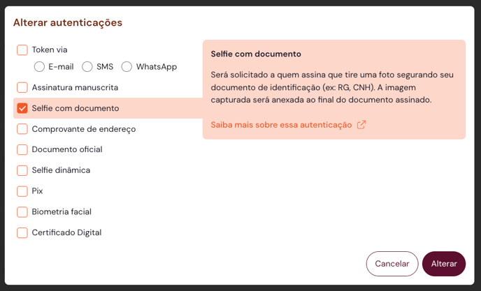 - Possibilidade de combinar quaisquer autenticações para o signatário.