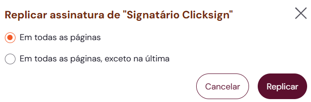 4. Caso seu documento tenha muitas páginas, você poderá replicar automaticamente os campos posicionados (assinatura e/ou rubrica).