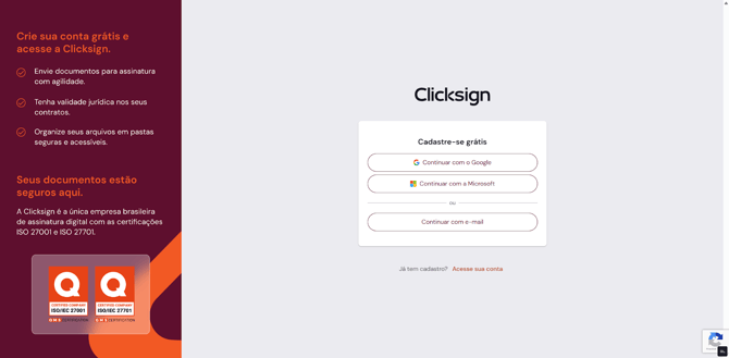 - Utilize uma conta do Google ou Microsoft já existente; ou