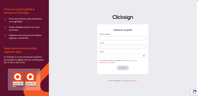 Antes de enviar seu primeiro documento, vamos configurar sua conta. É um processo rápido e você estará pronto em instantes.