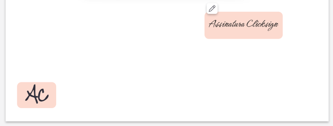 Quando for feita uma nova solicitação de assinatura com a autenticação de “assinatura manuscrita” e rubrica posicionada, iremos trazer o último desenho utilizado. Caso deseje refazer, basta passar o mouse sobre o local da assinatura e clicar no botão de edição: